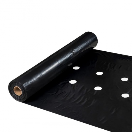 Пленка мульчирующая для клубники, земляники с отверстиями. Толщина 60 мкм, отверстия в два ряда, шаг отверстий 25 см., между рядами 30 см, срок службы 3 года.